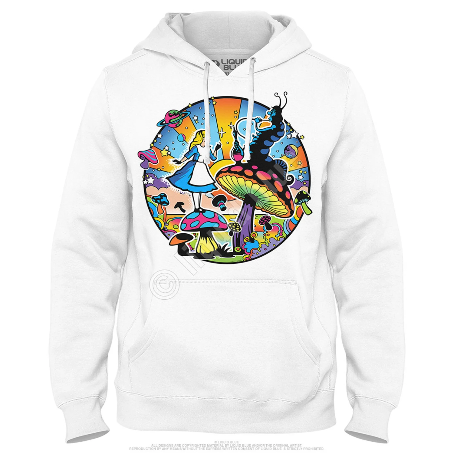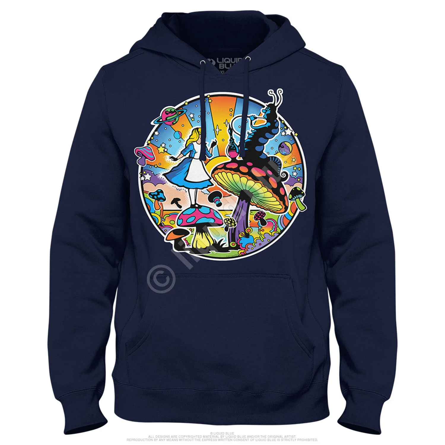 Alice In Wonderland Graphic Hoodie printed in the USA by Liquid Blue. You’ll be able to match any outfit with a Liquid Blue Build Your Own Hoodie. All prints are available in a wide array of sizes & colors.