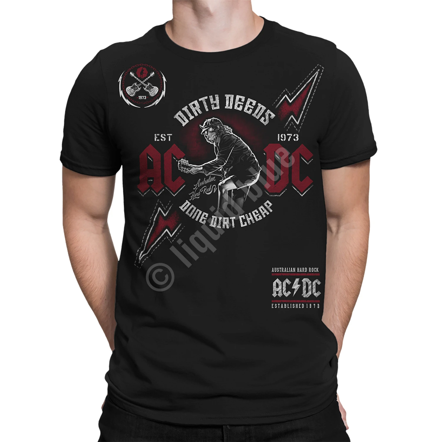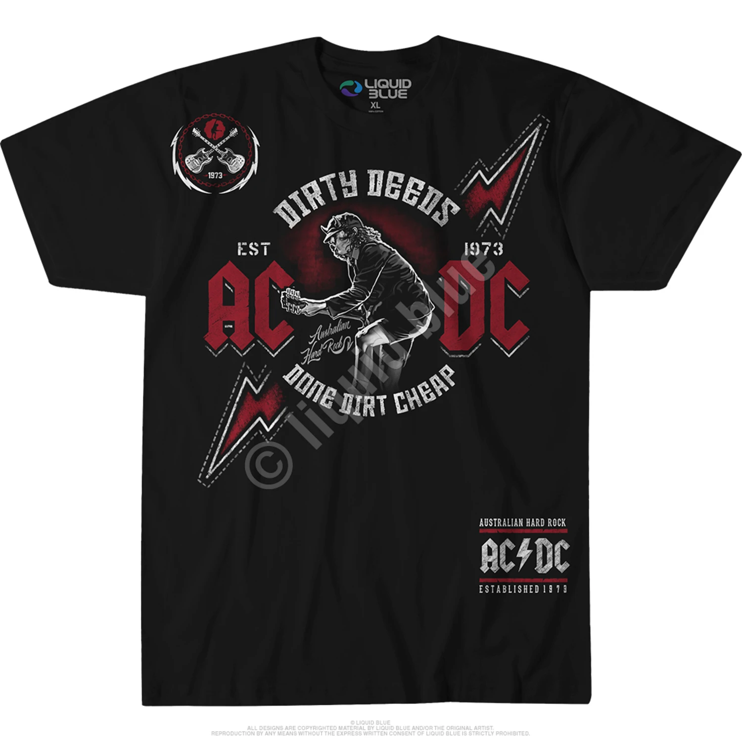 Officially Licensed AC/DC Graphic T-Shirt, Tee, Tie-Dye designed, dyed and printed in the USA by Liquid Blue.