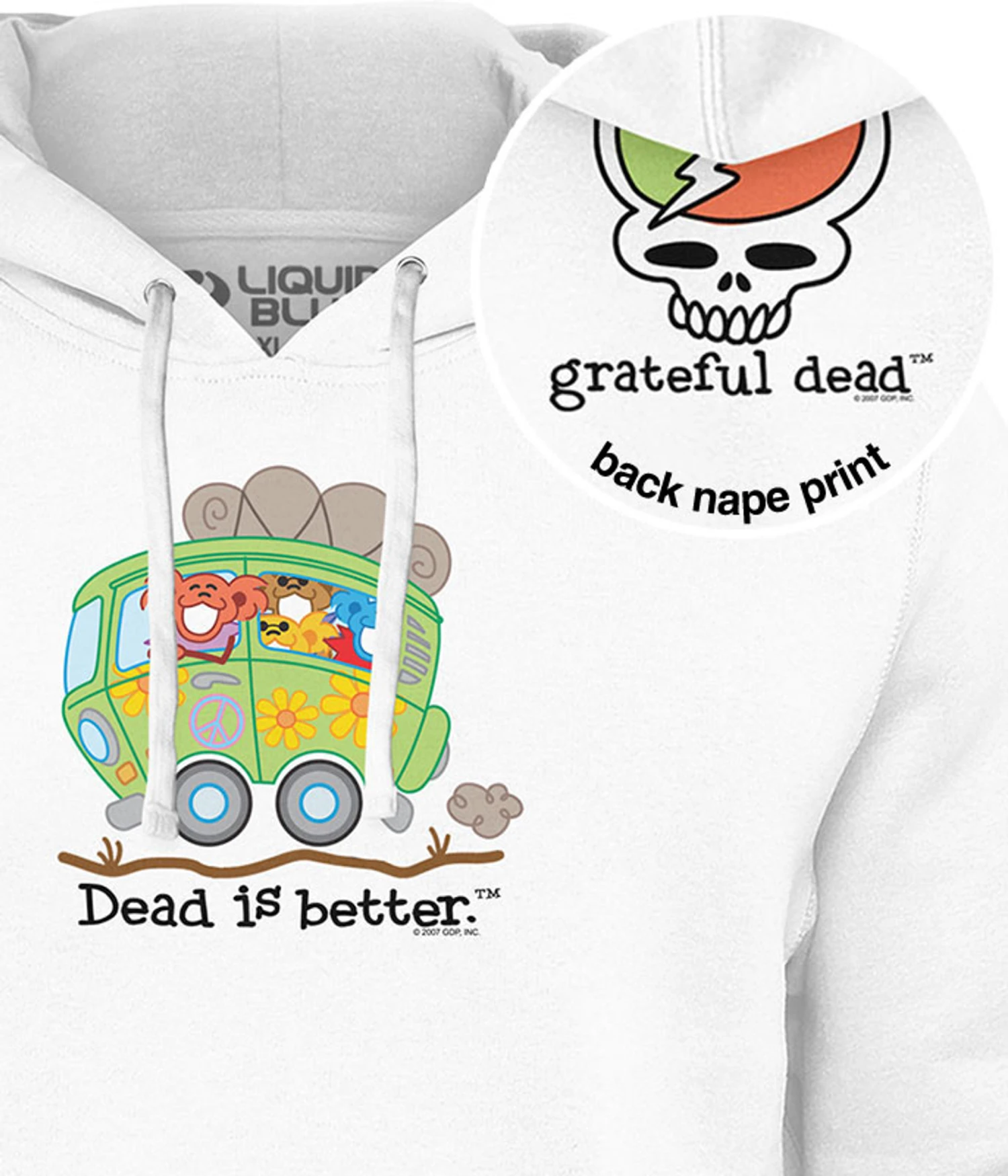 Officially Licensed Grateful Dead Graphic Hoodie printed both sides (Back Nape Print) in the USA by Liquid Blue. You’ll be able to match any outfit with a Liquid Blue Build Your Own Hoodie. All prints are available in a wide array of sizes & colors.