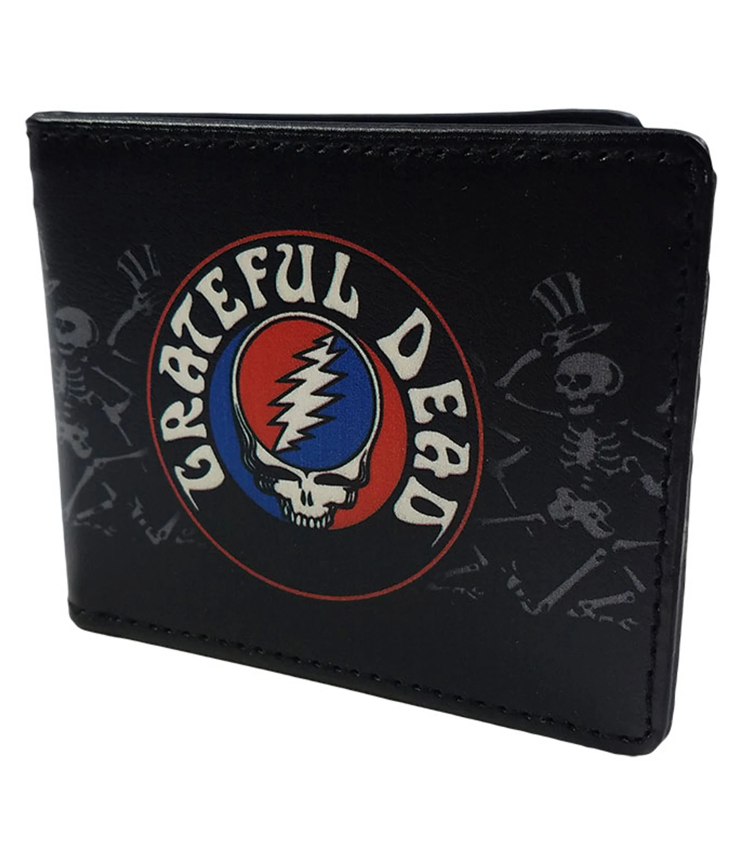 Officially Licensed Rock and Roll Merchandise | Gifts & Accessories. Grateful Dead SYF black Bi-Fold wallet contains interior card slots, clear ID sleeve and a billfold. Made in the USA.