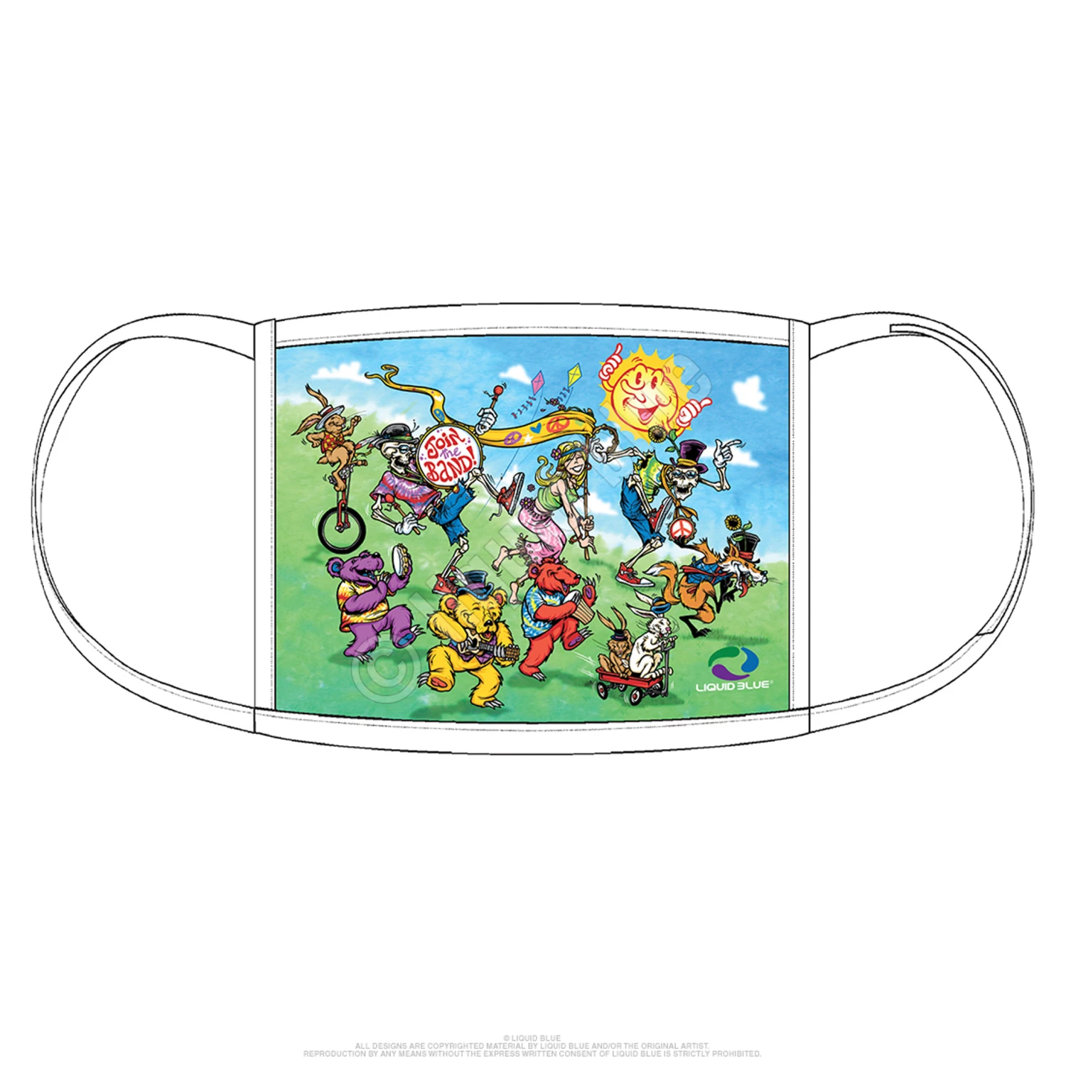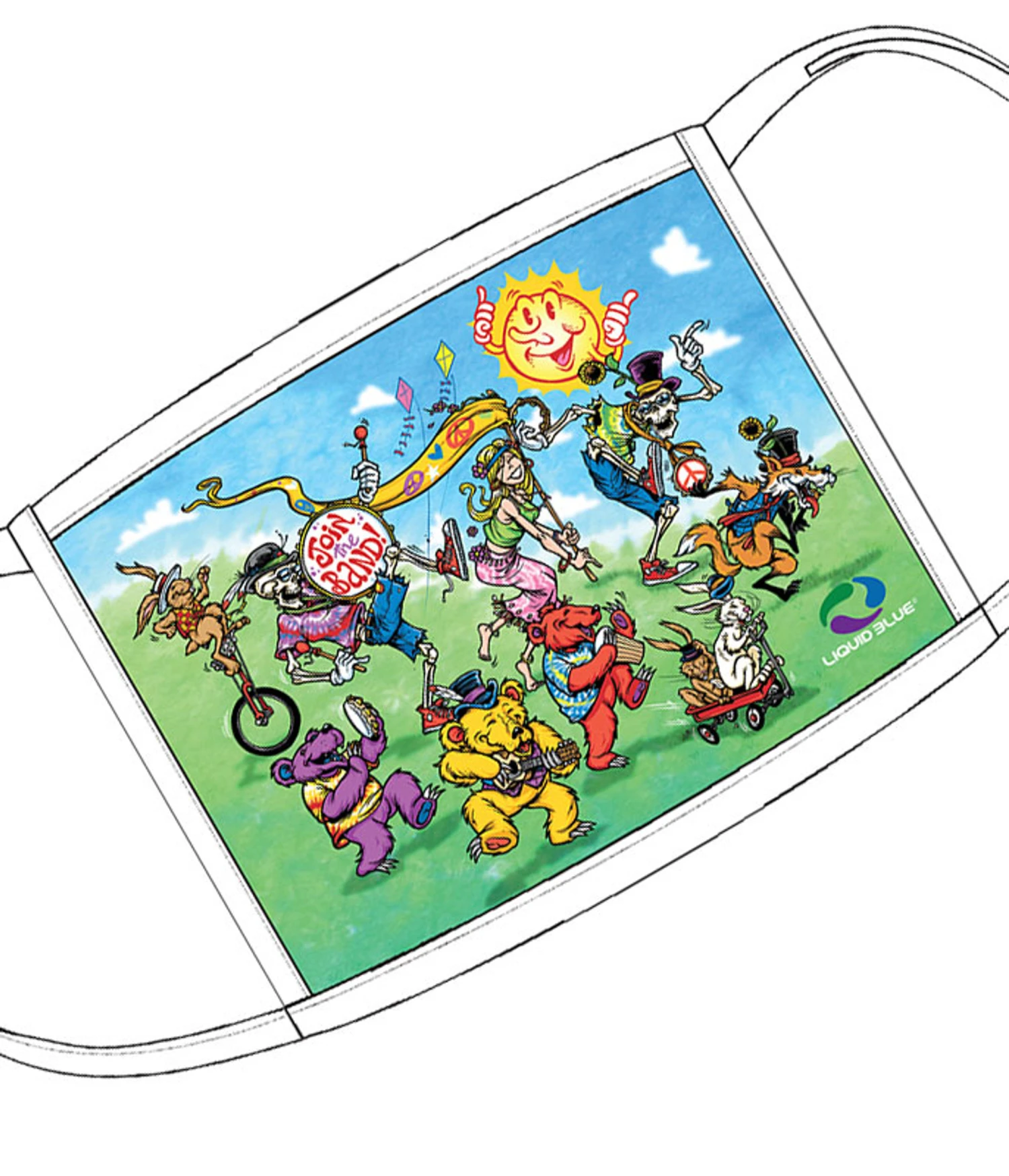 Official Liquid Blue Printed Artwork. 88% Polyester/12% Spandex • 100% Cotton Liner • Self Fabric Ear Straps • One Size Fits Most • Lightweight • Super Soft For Breathability • Digitally Printed • Machine Washable