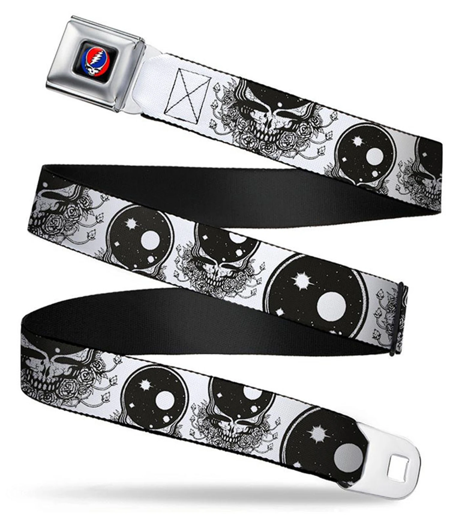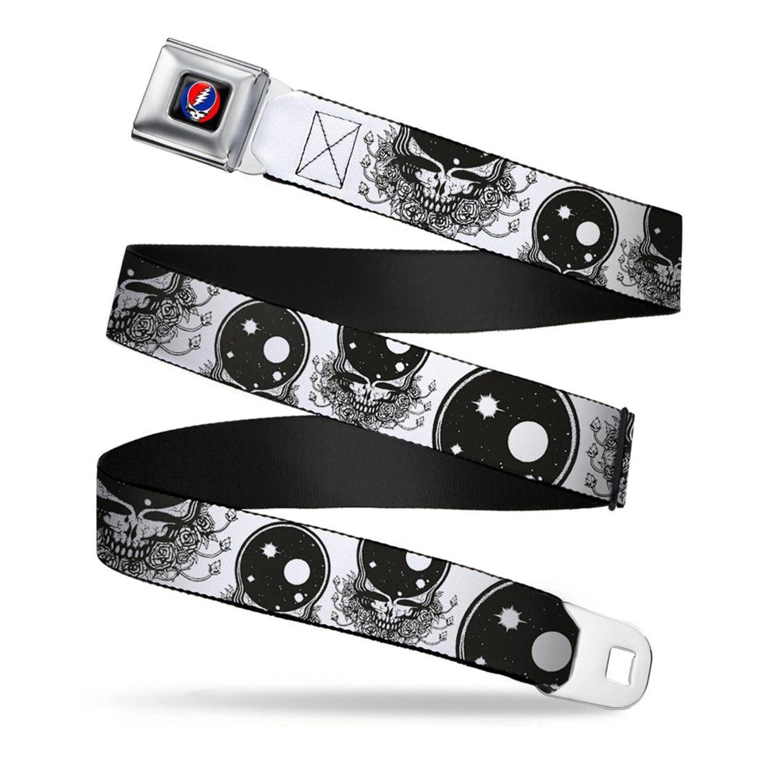 This iconic Seatbelt Belt is a cool, smart, and exciting blend of fashion and function. Always a conversation starter, our Seatbelt Belt adjusts to perfectly fit your waist while showcasing your unique sense of style. Our Seatbelt Belts are made with authentic automotive style seatbelt buckles making them easy to open and close at the push of a button. Our Regular, XL and XXL Seatbelt belts are 1.5 inches wide. This product is Handcrafted in USA by Buckle-Down Inc. and officially licensed by Grateful Dead.*THIS FASHION BELT IS NOT TO BE USED AS A SAFETY DEVICE!!! **This belt is intended to hold up your pants. This belt is NOT a safety belt extender. Made in the USA.