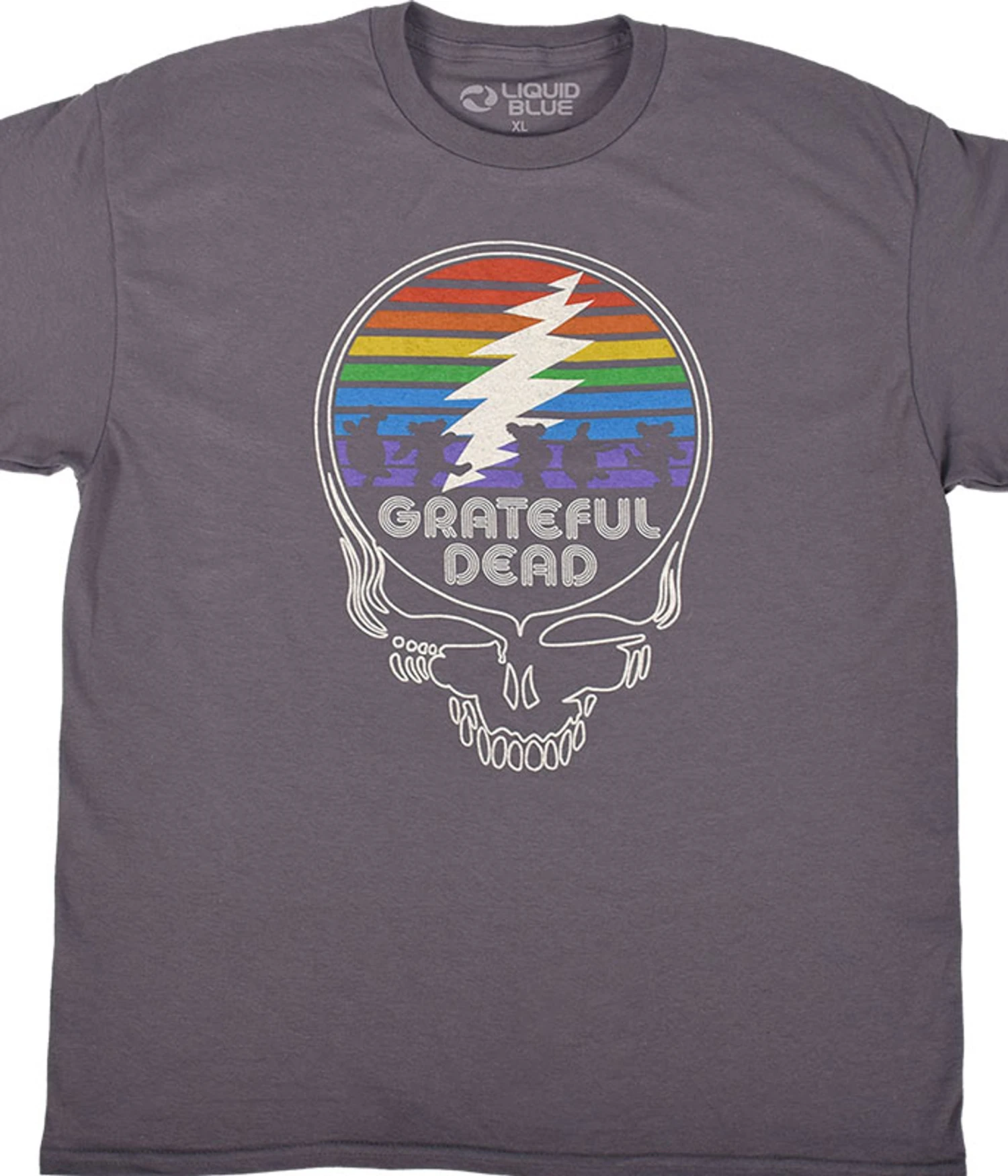 ** 2XL Size Only is printed of a Dark Heather Grey Tee. Officially Licensed Grateful Dead Graphic T-Shirt, Tee designed and printed in the USA by Liquid Blue.