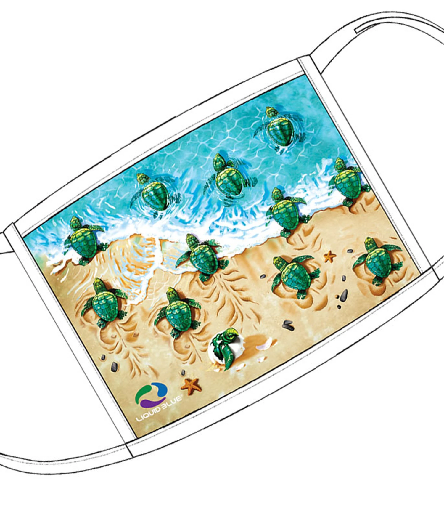 Official Liquid Blue Printed Artwork. 88% Polyester/12% Spandex • 100% Cotton Liner • Self Fabric Ear Straps • One Size Fits Most • Lightweight • Super Soft For Breathability • Digitally Printed • Machine Washable